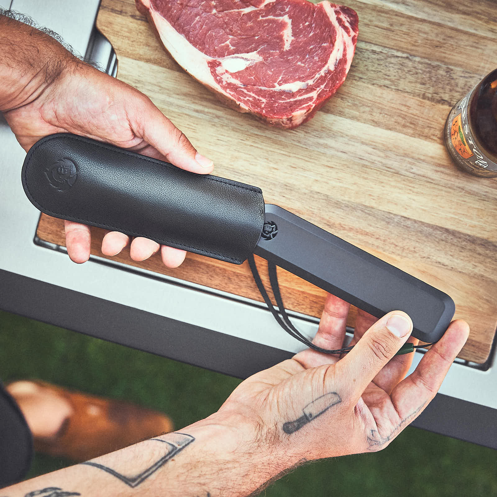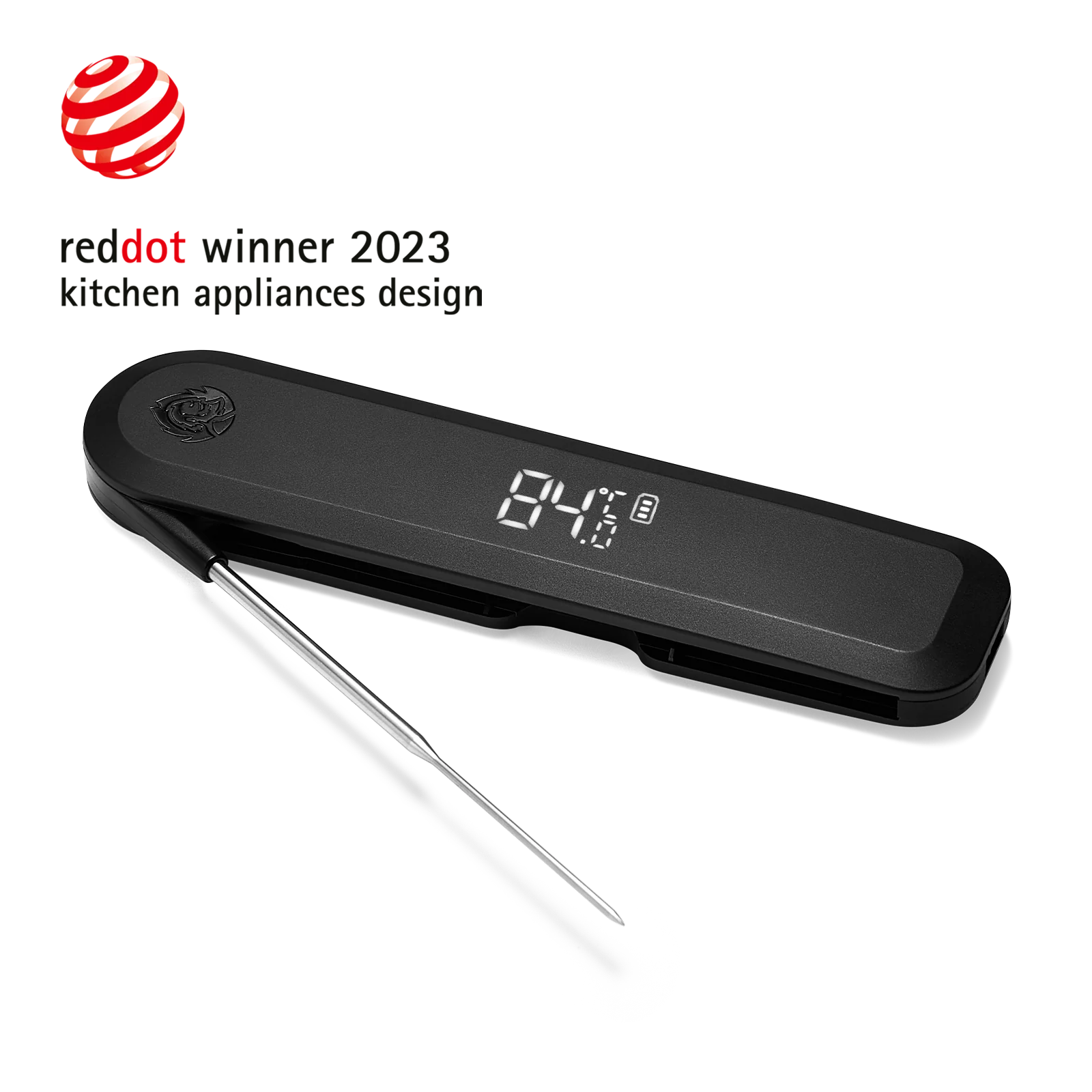Met de flinterdunne 1,5 mm meetpunt van de penetratiethermometer meet je de temperatuur van je gegrilde eten in slechts 3-5 seconden - voor een heerlijke smaak. De meetsonde is intrekbaar en het draaibare LED-display met Invisible-Off-design draait in een hoek van 180°. Dankzij de geheugenfunctie geeft het ook de gemeten temperaturen buiten de hete grillzone weer.